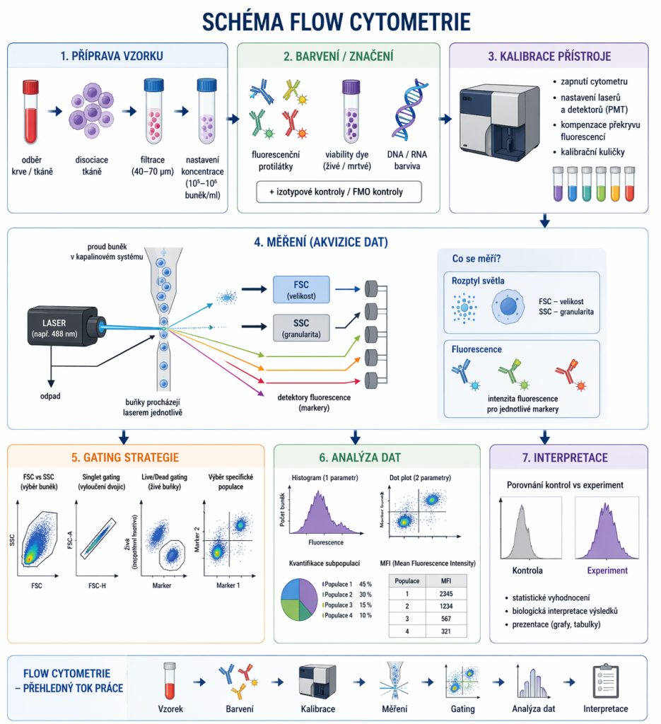 K dispozici jsou průtokové cytometry a sorter (technická specifikace viz https://www.ibp.cz/cs/servisni-pracoviste/prutokova-cytometrie/prehled/). Služby jsou závislé na kapacitních možnostech a jejich dostupnost podléhá internímu rezervačnímu systému. Je možná kombinace uvedených technik a také úprava jejich protokolů.