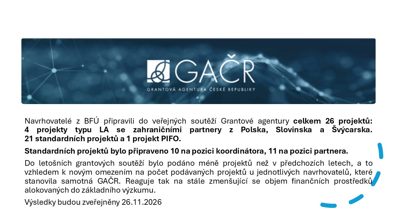 Navrhovatelé z BFÚ připravili do veřejných soutěží Grantové agentury celkem 26 projektů.