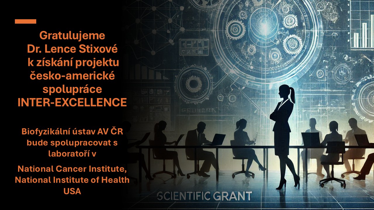 Gratulujeme Dr. Lence Stixové k získání projektu česko-americké spolupráce INTER-EXCELLENCE. Projekt se zaměřuje na studium vlivu steroidních hormonů na modifikace RNA v ozářeném genomu a bude realizován ve spolupráci s Laboratoří receptorové biologie a genové exprese National Cancer Institute, National Institute of Health, USA.