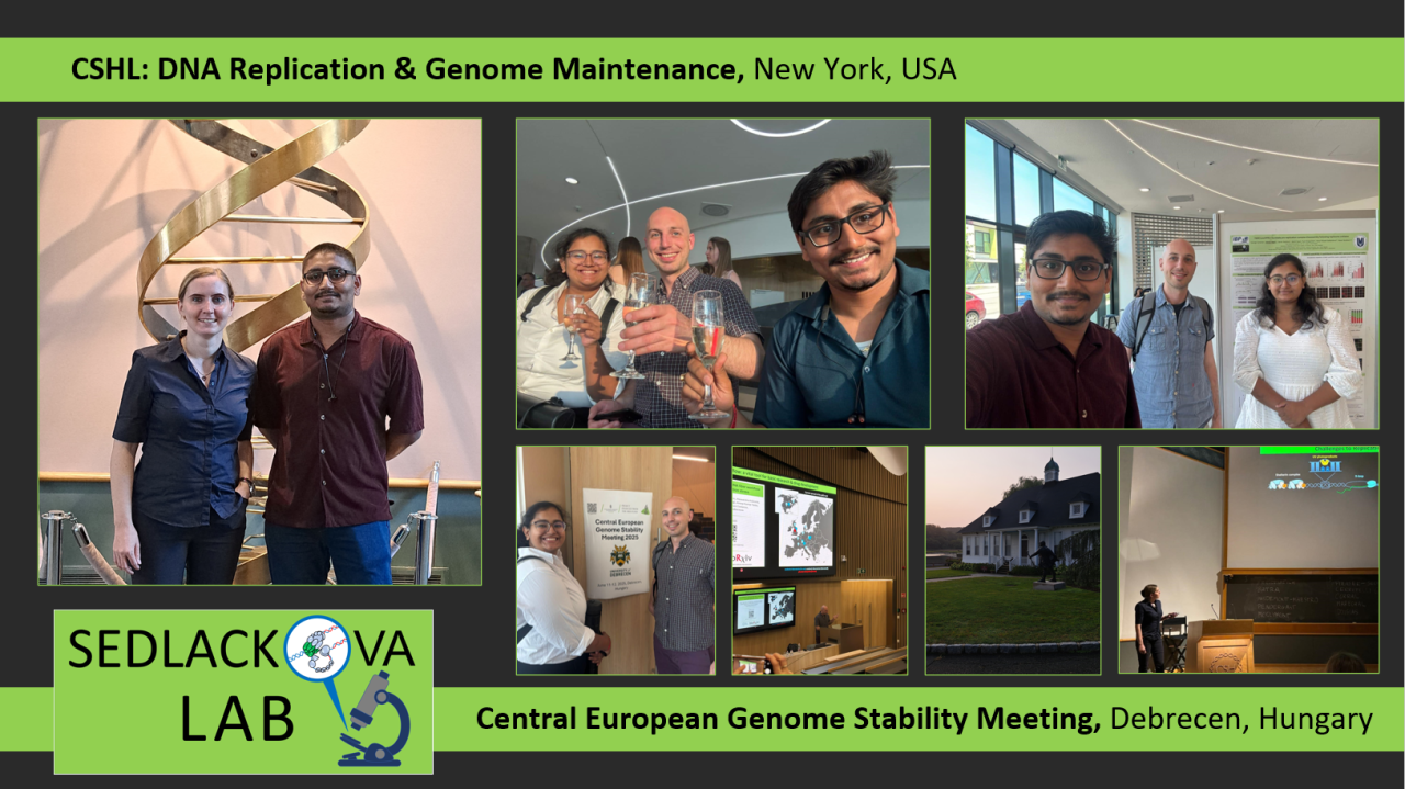 In June, our lab members attended the Debrecen Genome Stability Meeting, where postdoc Paolo Fagherazzi delivered a fantastic talk and our PhD students, Anoop Kumar Yadav and Simran Negi, presented their posters, receiving great feedback. In September, Hana Polasek-Sedlackova nad Anoop Kumar Yadav, presented the lab at the Cold Spring Harbor Meeting on DNA Replication & Genome Maintenance. Hana gave an invited lecture and chaired a scientific session, while Anoop presented a poster showcasing his latest results. Shortly after, Hana deliverd a seminar at Harvard Medical School, presenting our lab's latest research to an audience of leading scientists and clinicians. We are proud to see our team and research so prominently represented on the international stage! Congratulations to all!