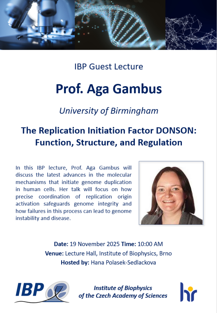 Join us for a special lecture by Professor Aga Gambus (University of Birmingham, UK), a leading expert in DNA replication and genome maintenance. Her pioneering work revealed how the replication machinery is assembled and disassembled, crucial steps for preserving genome integrity and preventing disease.
