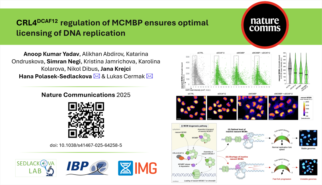 Cellular MCM equilibrium is maintained by distinct protein pools—parental and nascent MCMs. More about MCM pools here. During MCM biogenesis, MCMBP facilitates the assembly and transport of newly synthesized MCM subcomplexes into the nucleus. In our new bioRxiv pre-print, we identified CRL4-DCAF12 as a specific regulator of MCMBP chaperone during the assembly of nascent MCM complexes. This introduces a new quality control layer in the maintenance of cellular MCM equilibrium, necessary to prevent genome instability and disease development. We thank Cermak lab from IMG in Prague for a great collaboration! 🙏 We hope you enjoy the reading and find some inspiration 🙌